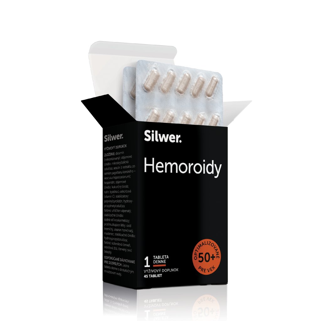 Problémy s hemoroidmi patria medzi najčastejšie ochorenia spojené s oslabením žilového systému v zrelom veku. Prejavujú sa bolesťou, svrbením, opuchom či krvácaním a výrazne ovplyvňujú kvalitu života. Komplex diosmínu, hesperidínu, aescínu, rutínu a vitamínu C pomáha posilňovať cievne steny, zlepšuje cirkuláciu krvi a zmierňuje opuchy. Vďaka tomu prináša úľavu pri hemoroidoch a zároveň komplexne podporuje zdravie žíl a ciev v celom tele.
