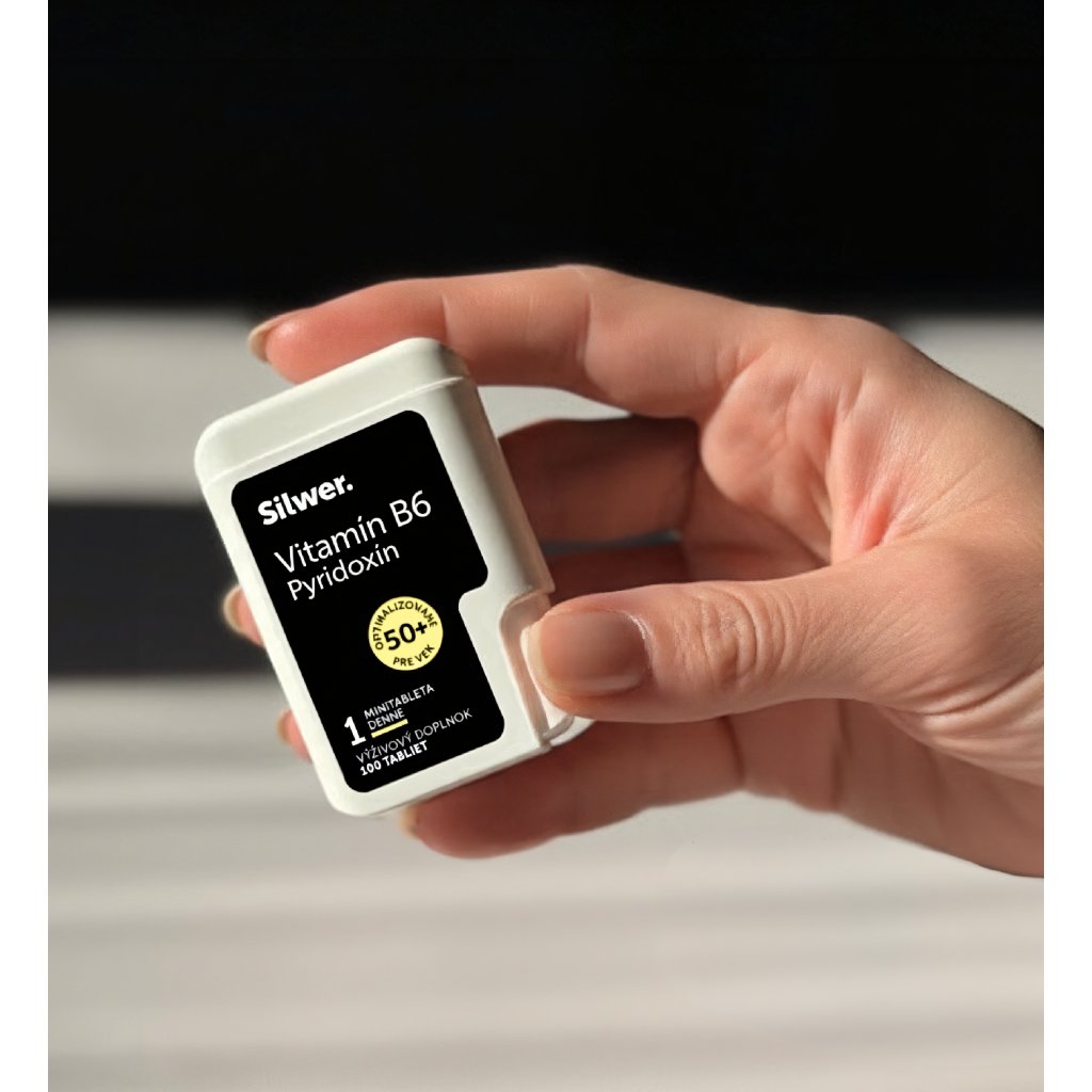 Vysoká dávka vitamínu B6 na podporu energie, správnej funkcie nervového systému, imunity a metabolizmu. Predchádza únave a slabosti u ľudí vo vyššom veku, ktorých organizmus už nevie vitamín B6 tak efektívne vstrebávať. Prispieva k tvorbe červených krviniek, hormonálnej rovnováhe a k normálnej syntéze cysteínu – aminokyseliny dôležitej pre ochranu buniek pred oxidačným stresom. Praktické balenie minitabliet v dávkovači vhodnom do vrecka a na cesty.
